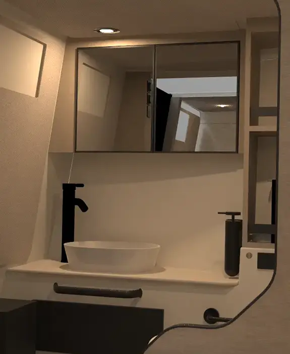 Choose premium fabrics and flooring, refine the layout with options such as a private toilet / double bed or opt for the Black Pack with all details in black. Complete it with upgrades like an electric anchor, electric toilet and tailored engine and propulsion options.